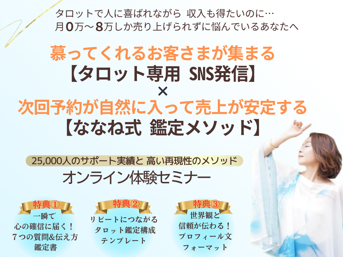 大好きなタロットを自信を持って伝えていきたい。タロットを通して、自分らしく働きたい。その想いは【仕事に直結するタロットの学び】と【収入につながる具体的な方法】を知ることでもっと早く、もっと確実に叶えていけます。